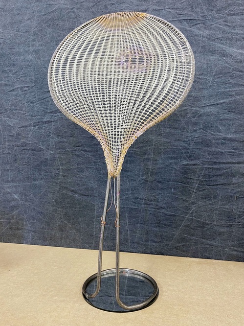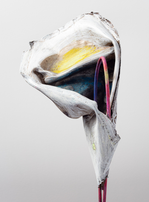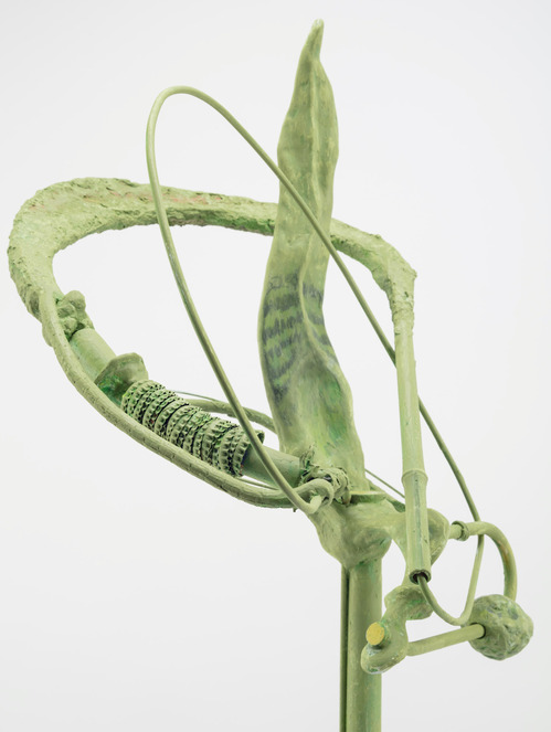 steel, copper, cabbage, wood, pampas stalk, palm frond, wire mesh, fabric, mylar, gesso, acrylic paint, oil, dried snap peas and scarlet runner bean pods from garden, lemon & orange slices, sculpta-mold, cast hydrocal, aluminum